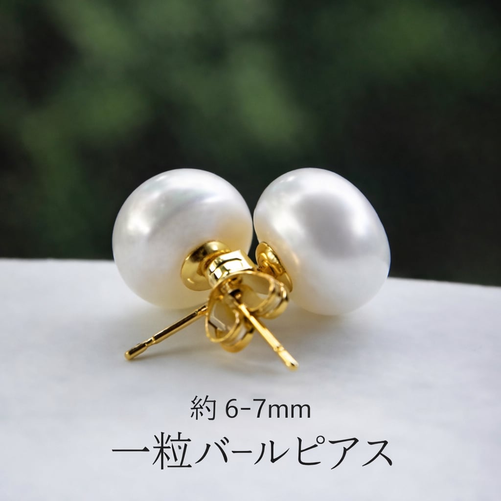 一粒パールピアス 6〜7mm ゴールドカラー 両耳用 シンプル 日常使い