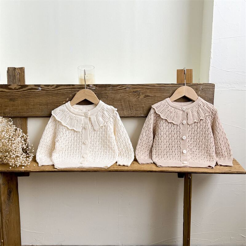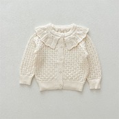 2024秋新作 ベビー服 女の子 ラッフルカラー カーディガン ニット コート 可愛い トップス 子供服