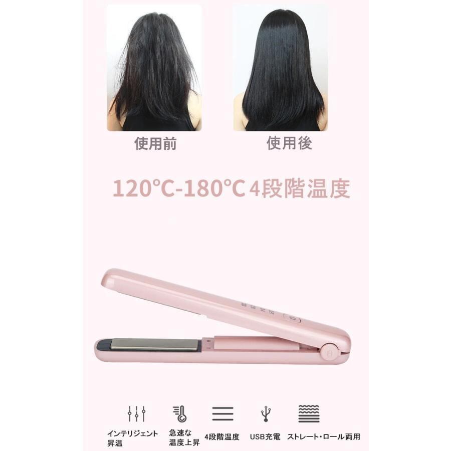 4段階調節 ヘアアイロン ストレートアイロン USB充電式 海外使用可 コードレスヘアアイロン ヘアアイロン ミニヘアアイロン おしゃれ かわいい 小型 小さい 旅行用 コンパクトサイズ