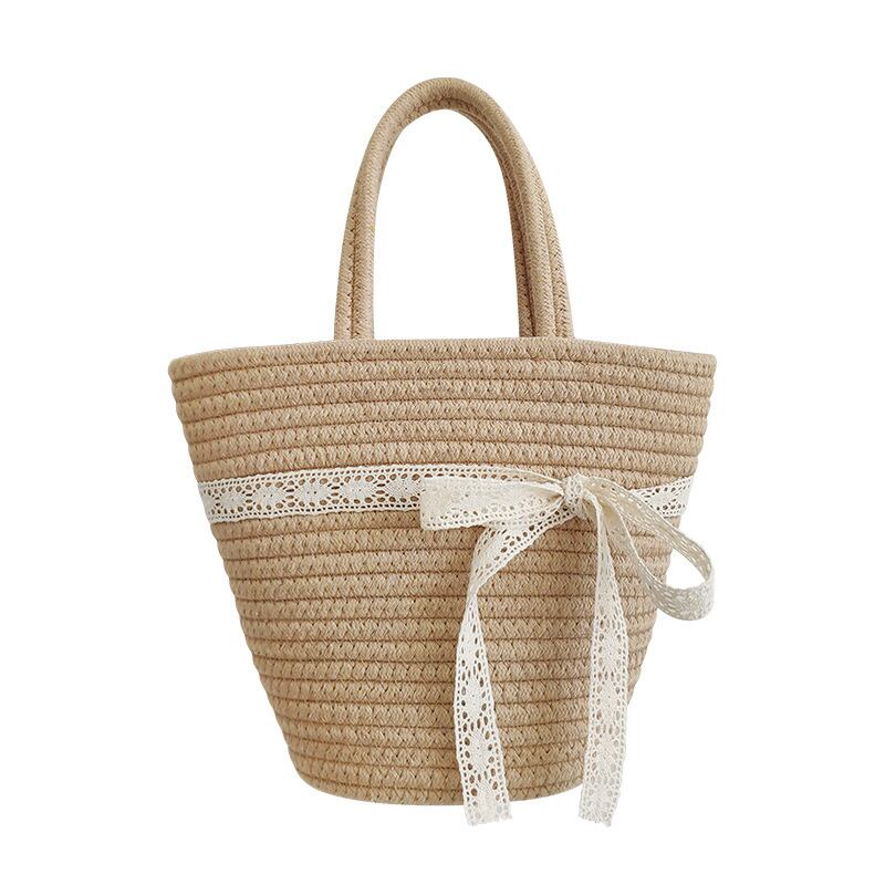 全2色★ レース付きかごバッグ コットンロープバック旅行 バカンス 韓国バッグ