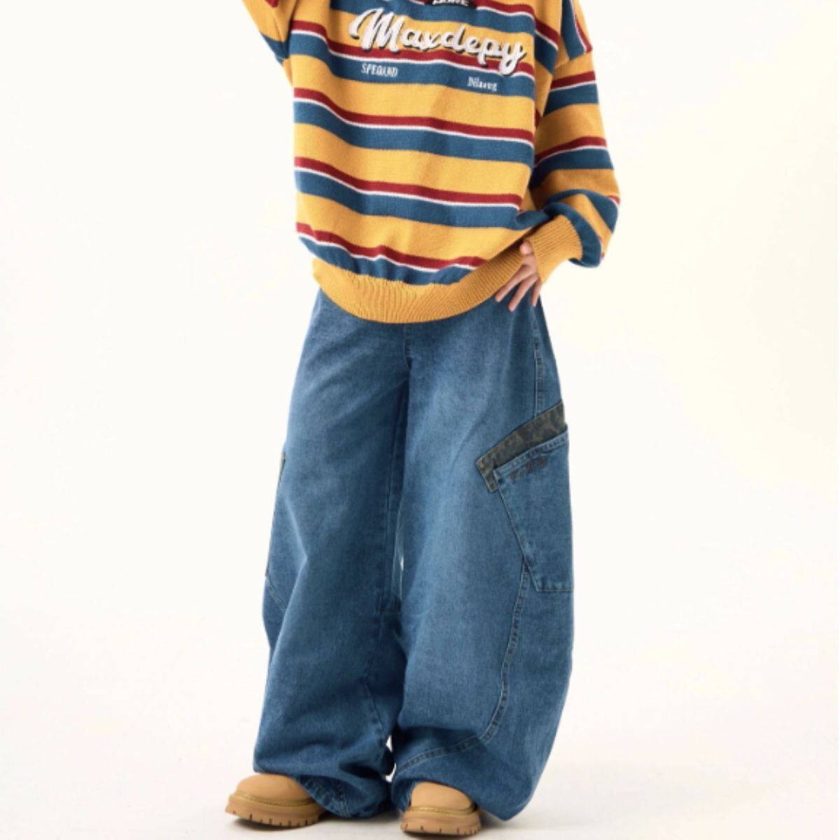 デニム ロングパンツ バレルレッグ レオパード ジーンズ ジーパン レディース 韓国ファッション