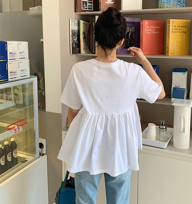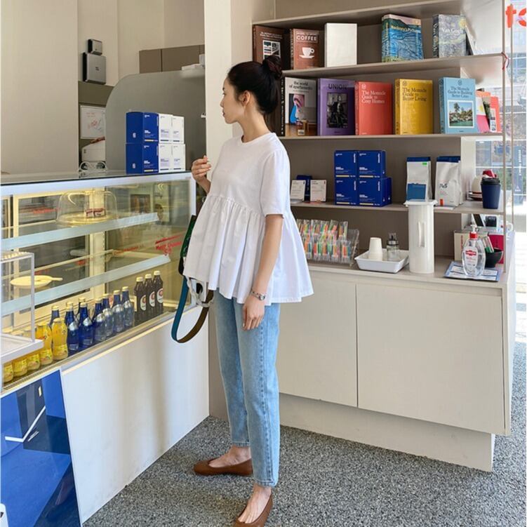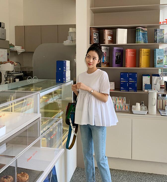 フリルペプラム トップス Tシャツ 半袖 シンプル 大人かわいい カジュアル 体型カバー レディース トレンド 人気 プチプラ 韓国ファッション 春夏新作