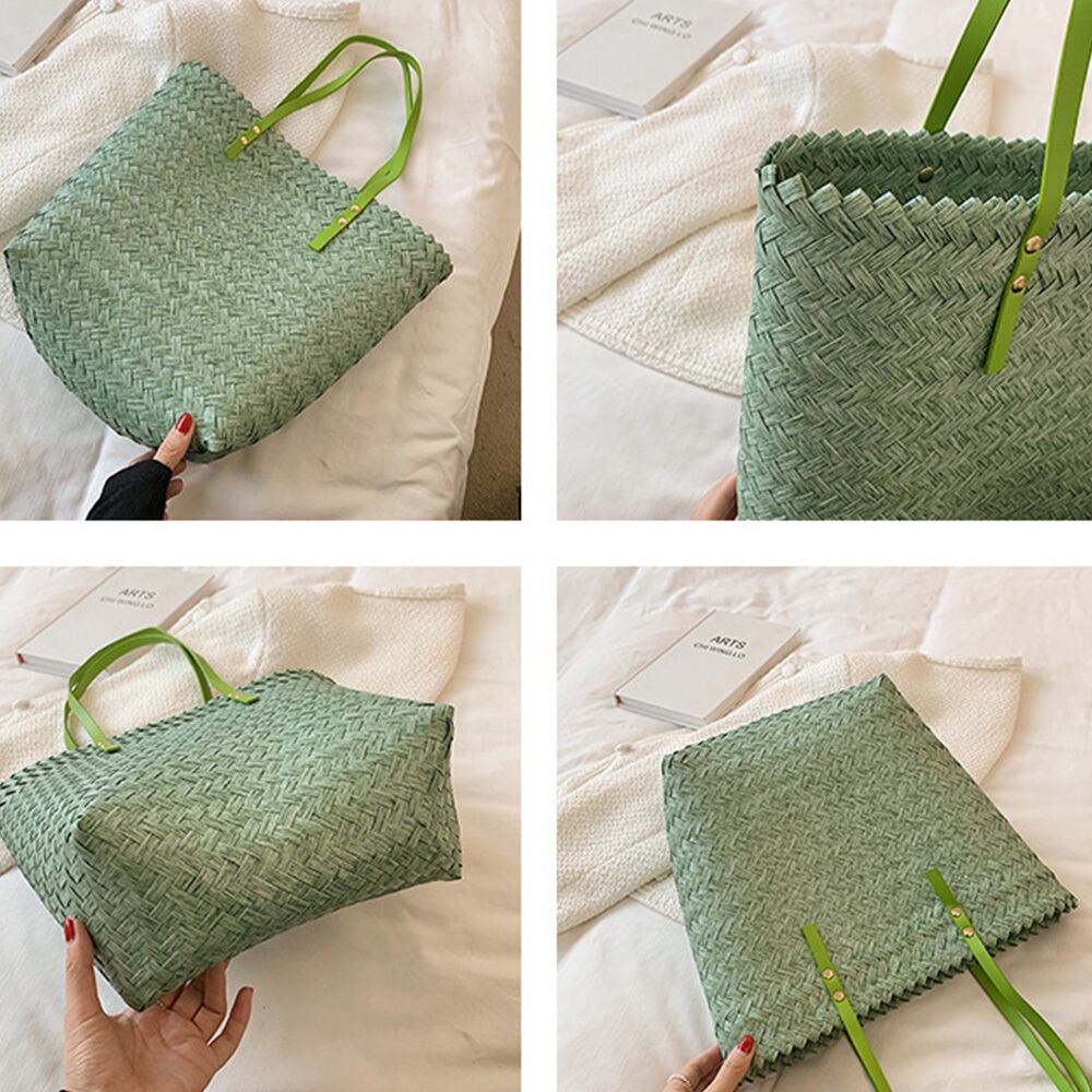 【残りわずか】 大人かわいいナチュラル ストローバッグ A4収納/夏映え&通勤 OK《軽量・肩掛け》 ブラウン