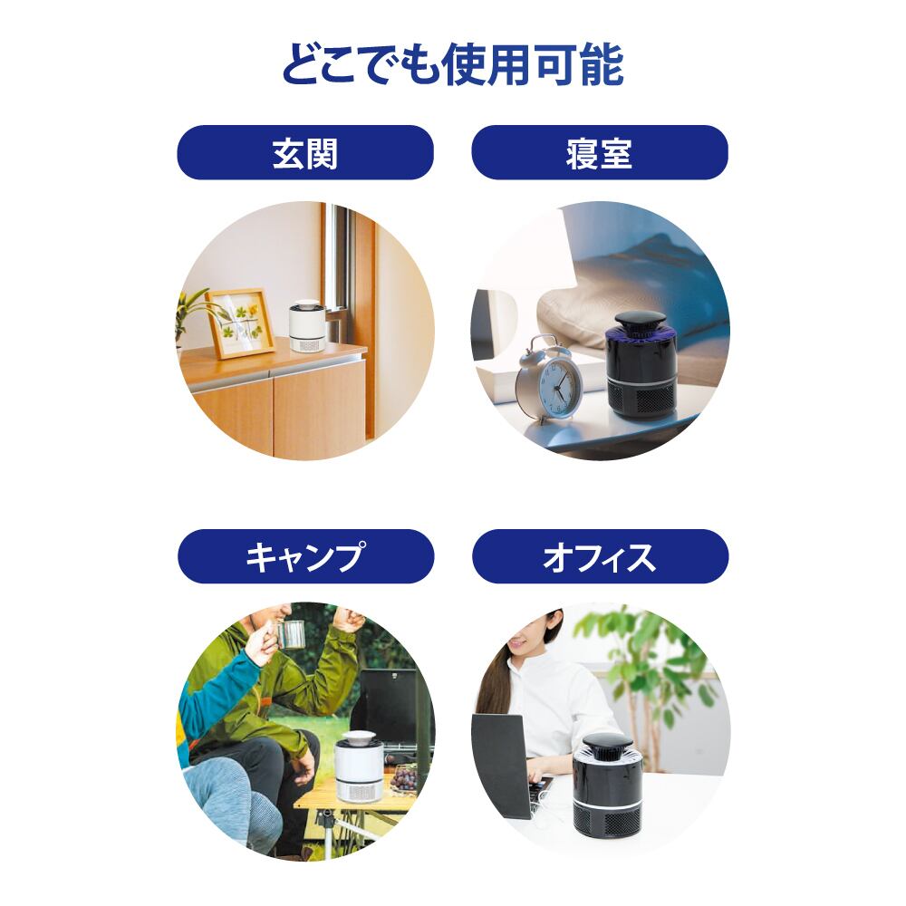 【夏限定★静音 薬剤不要】 ブルーライト蚊 取りファン | USB給電/子ども&ペットOK /羽虫・蚊をしっかり吸引! ブラック