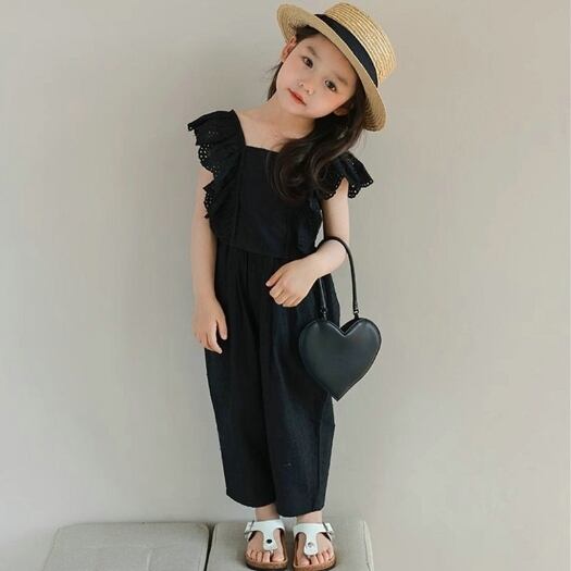 《韓国風キッズ夏セットアップ》ノースリーブTシャツ+パンツ2点セット|兄妹リンクコーデにも◎ブラック130-140cm