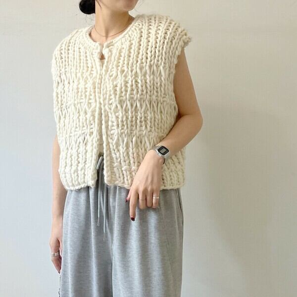 【2025新作】ハンドニットロービングベスト《F1305》アイボリー/F