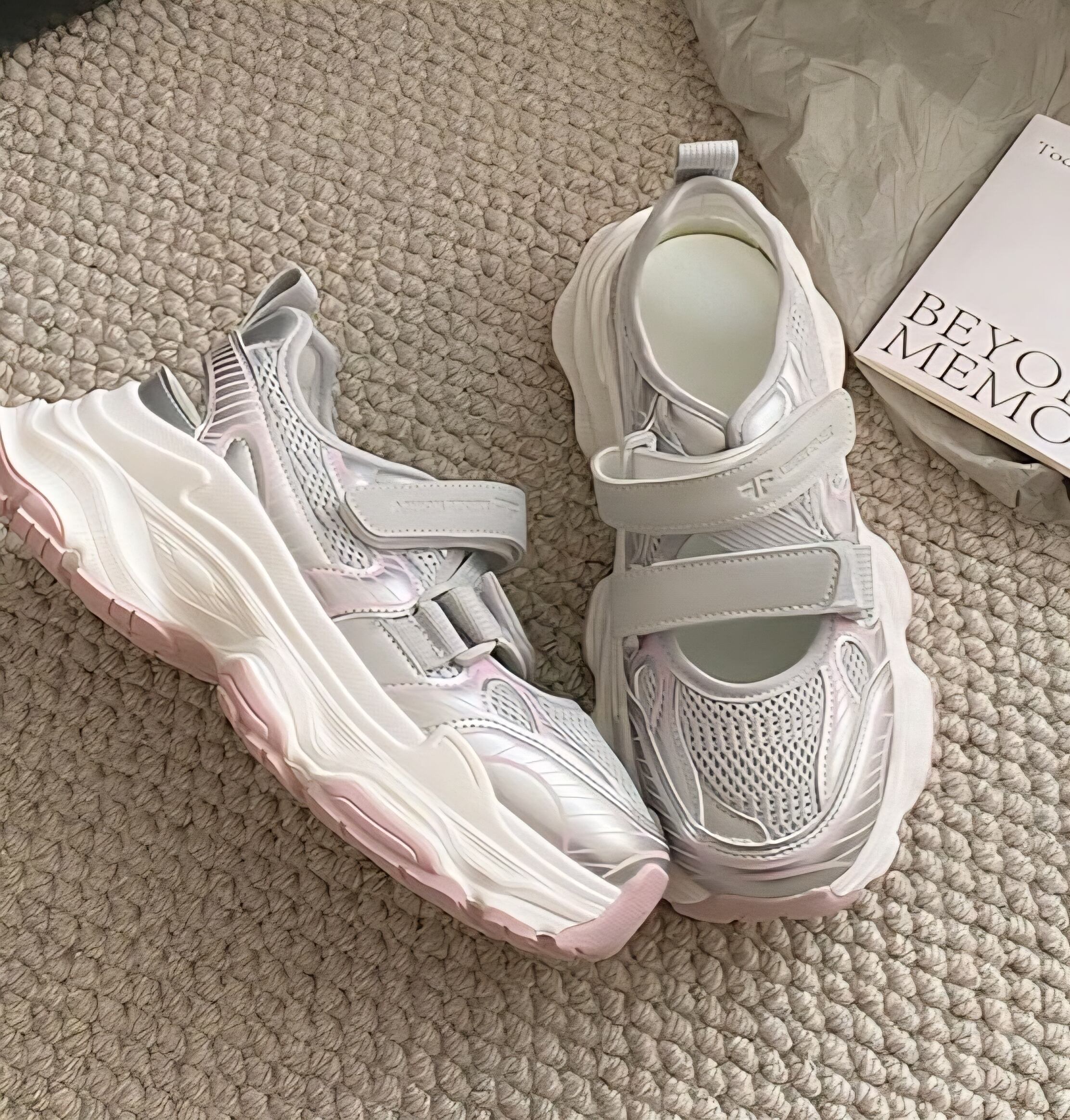 スニーカー サンダル 厚底 レディース スニーカーサンダル 疲れない 軽量 ベルクロ スポーツサンダル 厚底スニーカー 厚底サンダル 歩きやすい サンダル風 靴 メッシュ シューズ 通気性 痛くない 履きやすい カジュアル 夏 春 cocomomo ピンク23.5