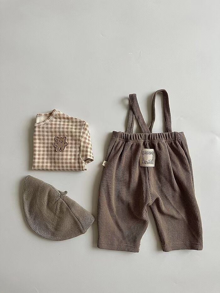 贈り物にもぴったりなワッフルベビーサロペット♪秋の新作ベビー服から、ワッフル素材のサロペットパンツが登場!