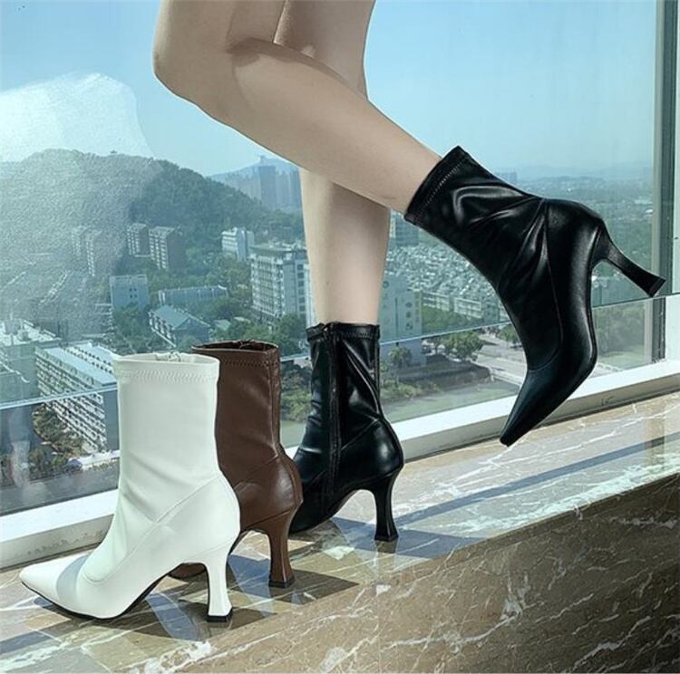 - ショートブーツ:ポインテッドトゥ・細ヒール・ジッパー付き