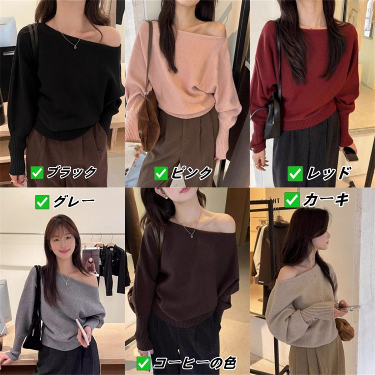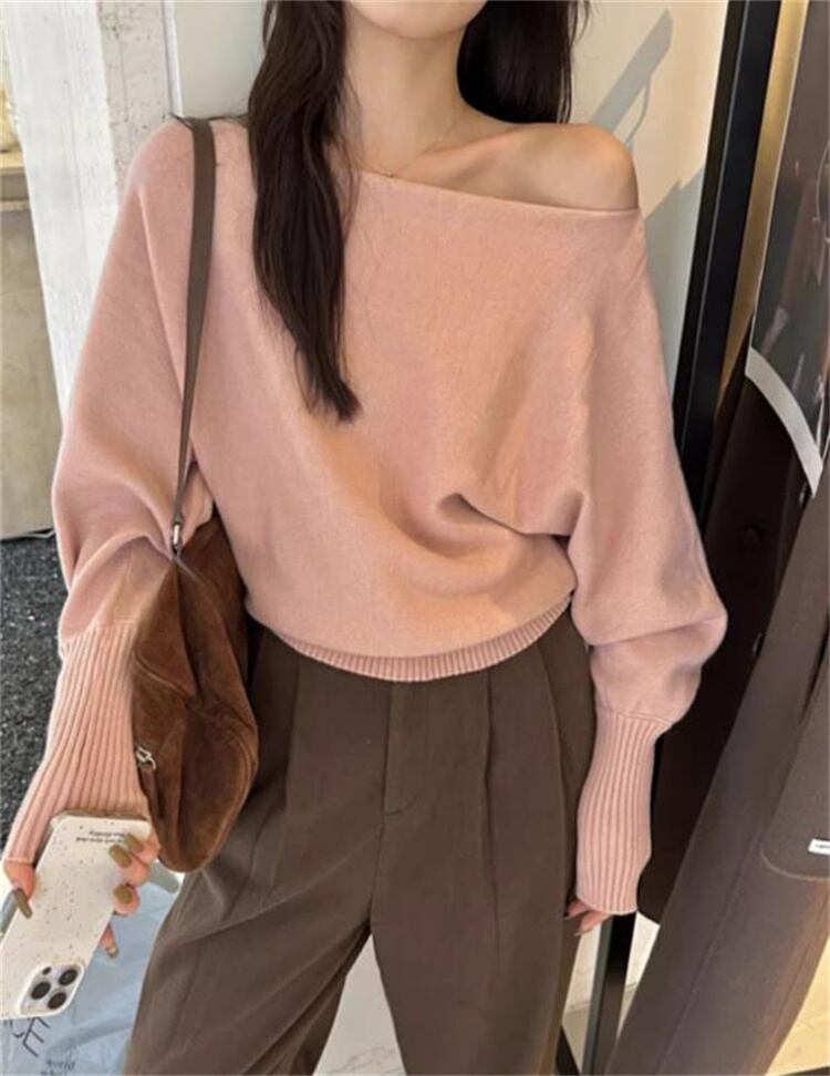 韓国ファッション 秋冬 カットソー オフショルダー 一言の肩 セーター