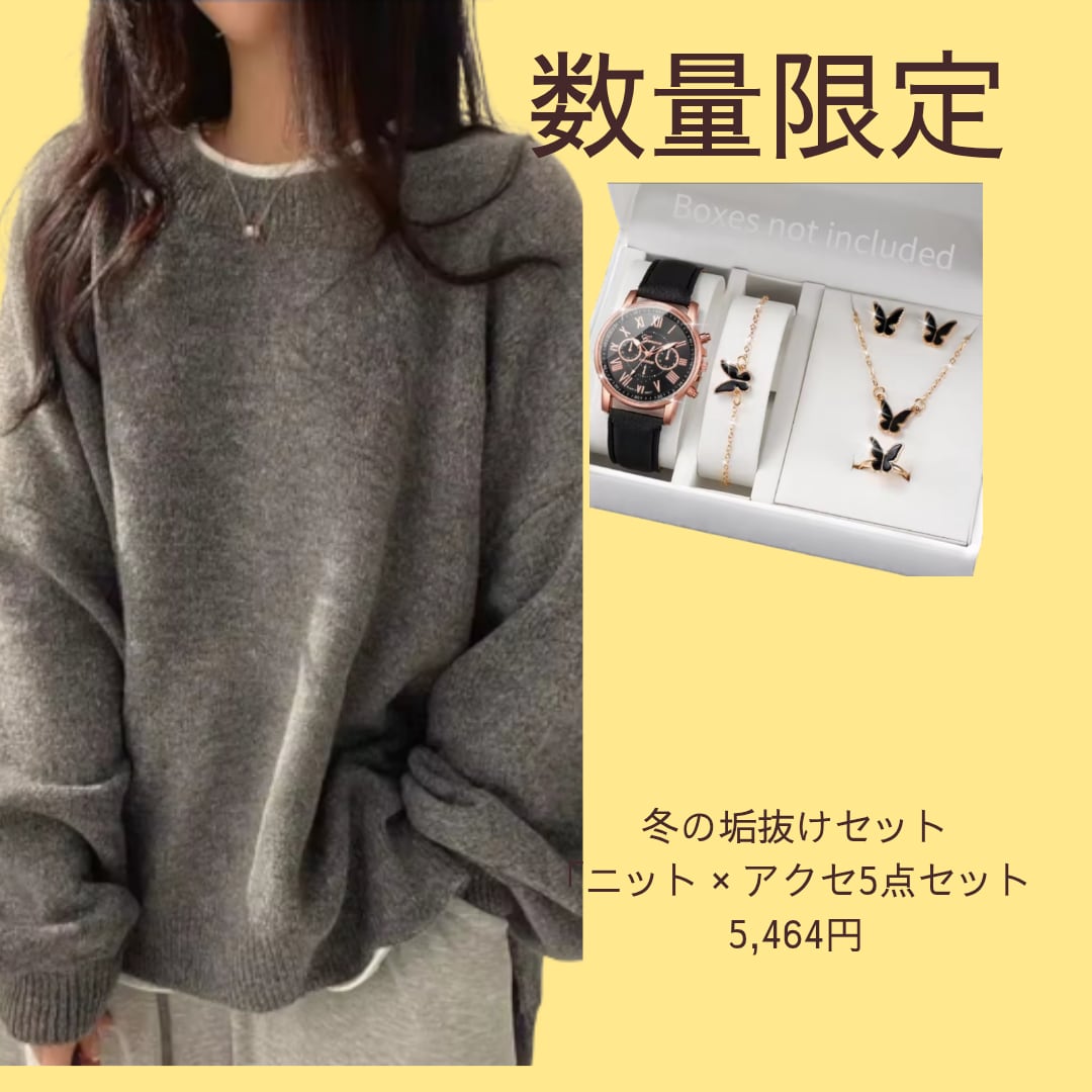 《数量限定》 冬のふんわりニット×アクセ3点セ ット 大人かわいい冬コーデがこれ1つで完成