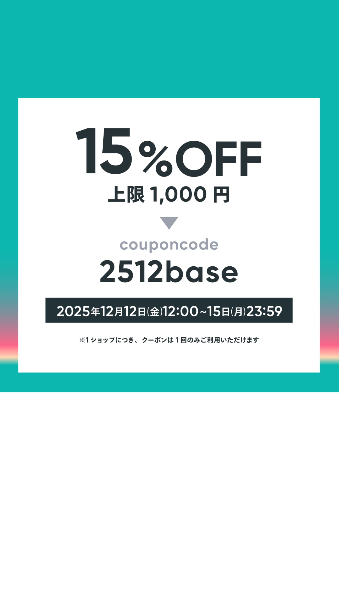 ・15%OFFクーポン(上限1,000円) クーポンコード:2512base