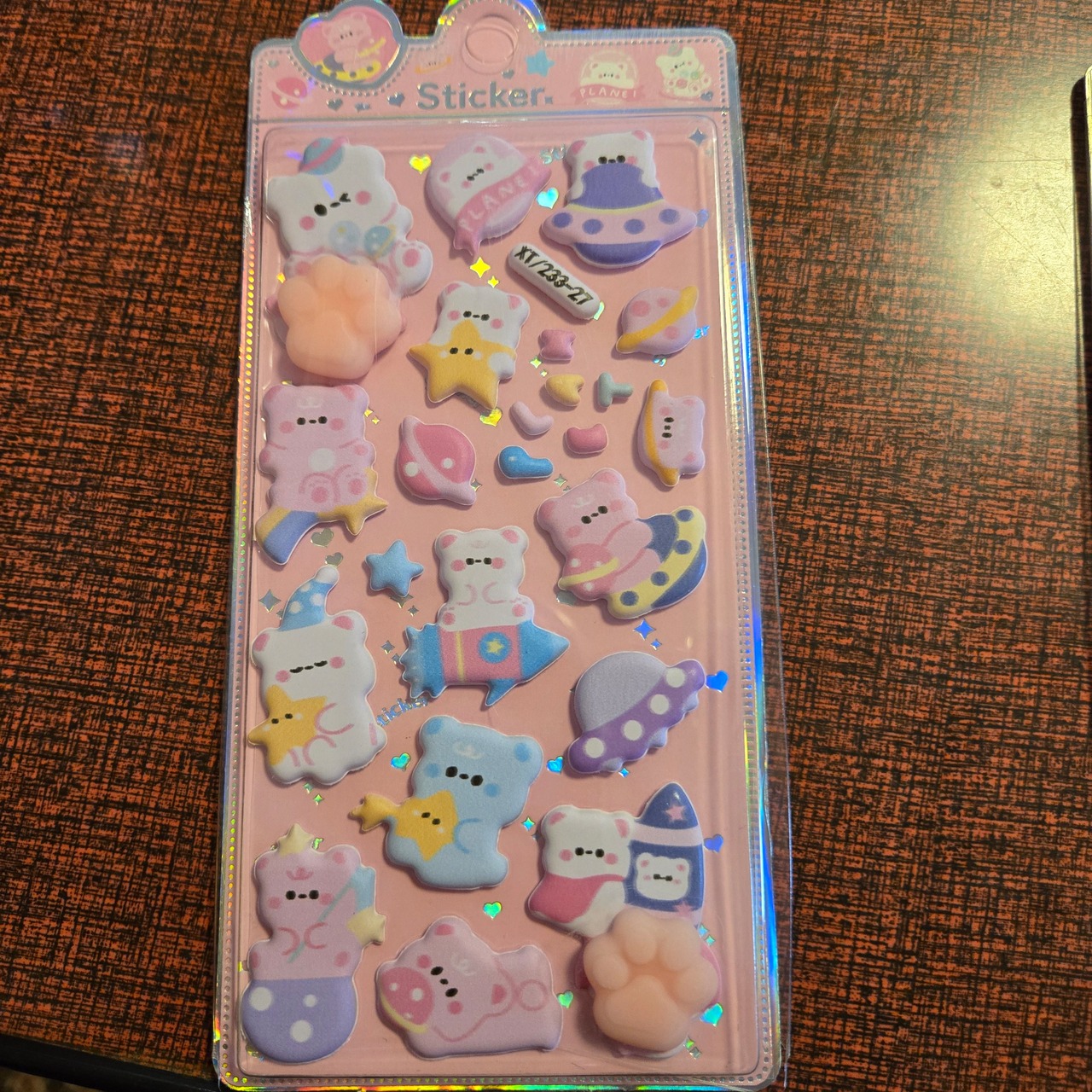 くま宇宙 ぷっくり立体シール3枚セット|手帳デコ・ごほうびシールに人気