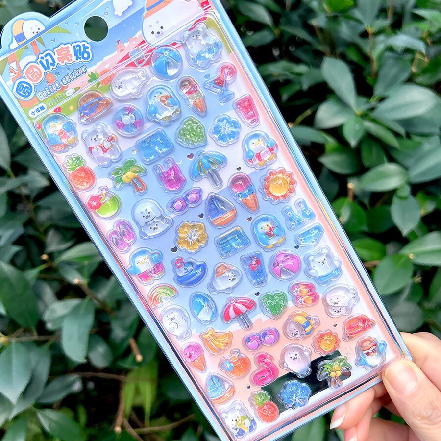 デコシール / 3Dシール / トレカデコ / 手帳デコ / スマホデコ / 韓国雑貨 / ハンドメイド素材 / DIYパーツ / キッズクラフト / 夏モチーフ