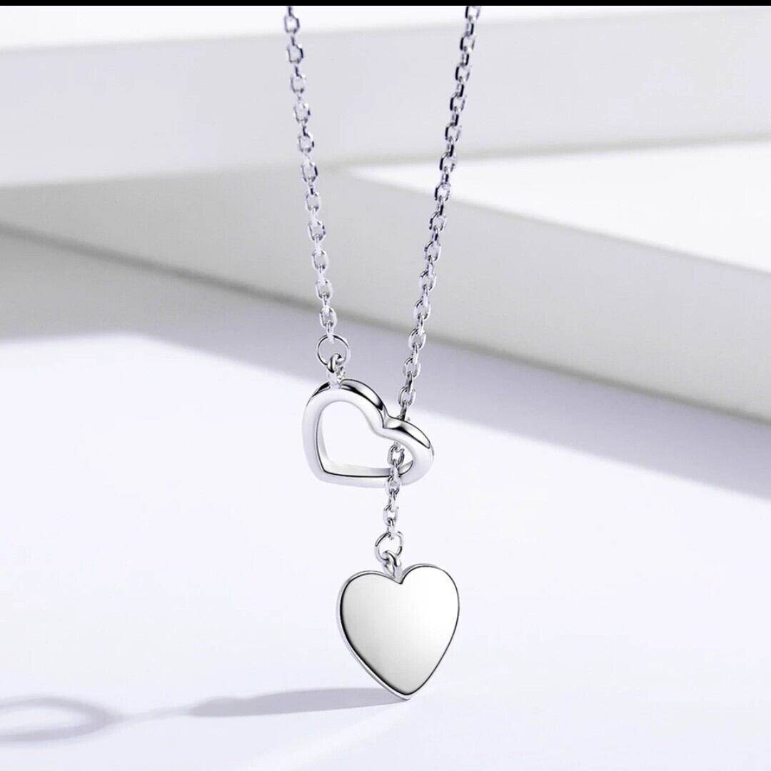 925スターリングシルバーネックレスペンダント女性のためのダブルハート