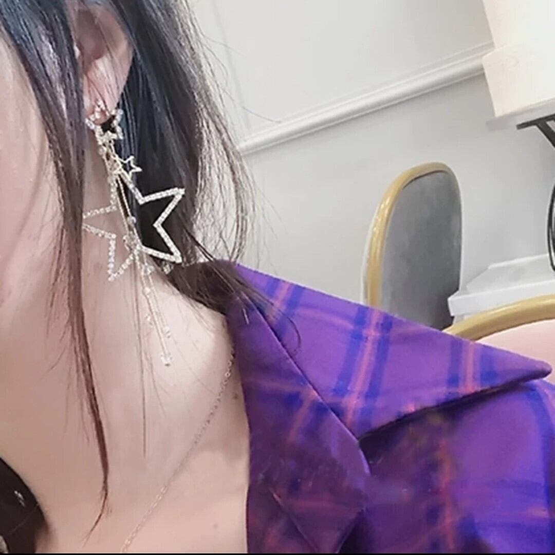 韓国クリスタルスターパールタッセルロングドロップイヤリング女性の女の子のファッションラインストーンpendientesジュエリーギフト