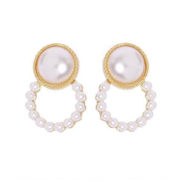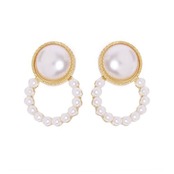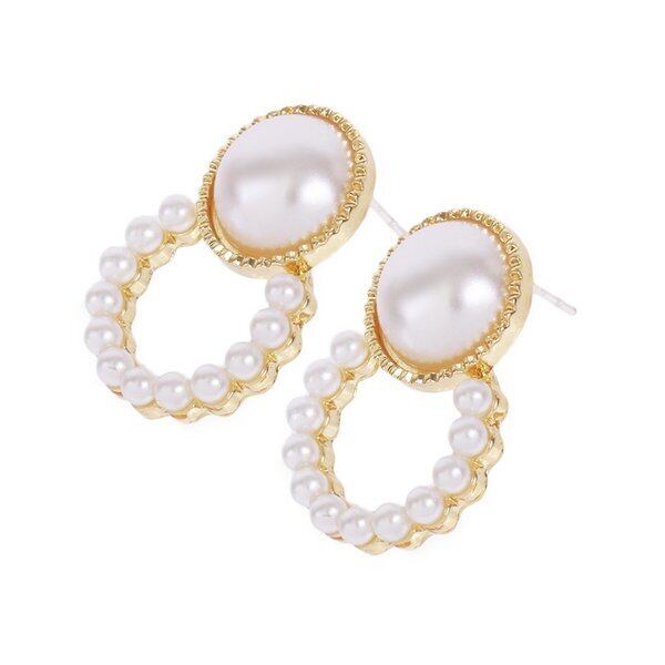 パールをたくさん装飾したシンプルフェミニンなピアス。
