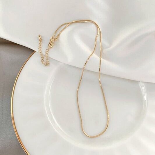 細身でシンプルなスネークチェーンネックレス。