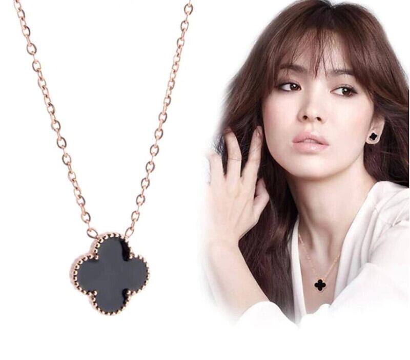 ネックレス 四つ葉ネックレス 天然シェルとオニキス アクセサリパールピアス