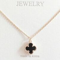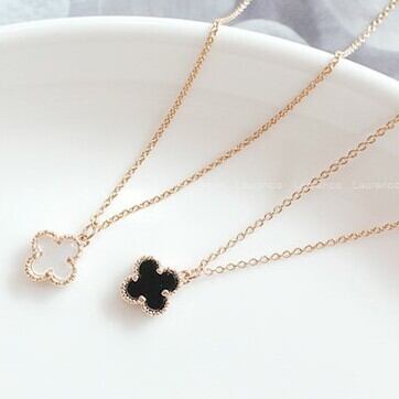 クローバーネックレス ブラック&ホワイト 四つ葉 かわいい