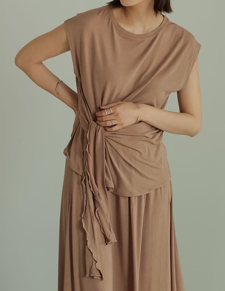 ソイビーン裾リボンカットソーTシャツ : モカ Mサイズ