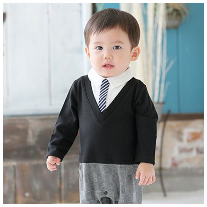 フォーマル 服 1歳 2歳 3歳 4歳 5歳 男の子 ロンパース 男児 結婚式 七五三 ネクタイ風付 ロンパース ボディースーツ 幼稚園 保育園 フォーマルVネックロンパース 秋冬新作 フォーマルスーツ 男の子 ベビー ロンパース 長袖 70cm 80cm 男の子 節句 晴れ着 男の子スーツ ベビータキシード 入園式 卒園式 紳士ロンパース ネクタイ風付 新生児 幼児 出産祝い