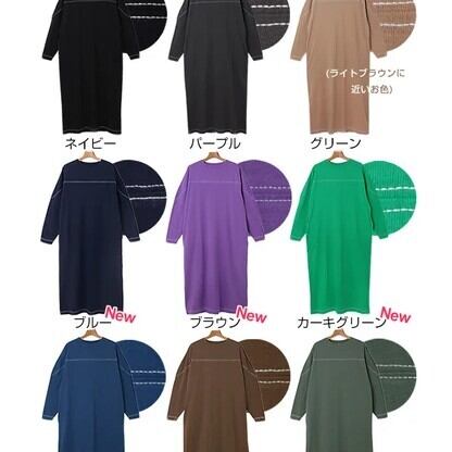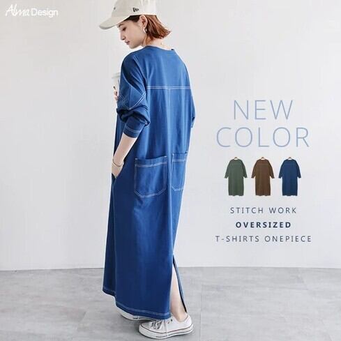 配色ステッチオーバーサイズ長袖Tシャツワンピース