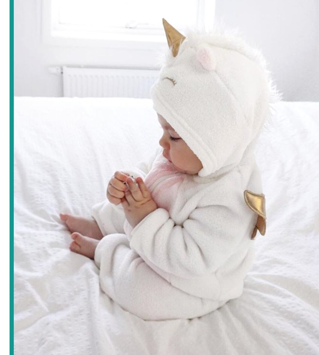 送料無料★ ✨ユニコーン ベビー コスプレ ロンパース✨ ふわふわフード付き/冬のあったか着ぐるみ/0〜24ヶ月