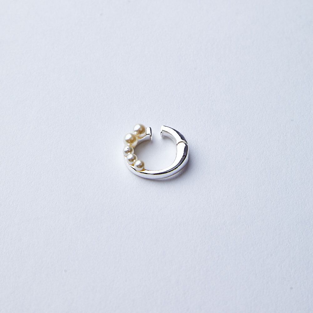 派手過ぎず地味すぎず絶妙なサイズになるように調整したイヤーカフはスワロフスキーパールをサイズ違いで使用し、
