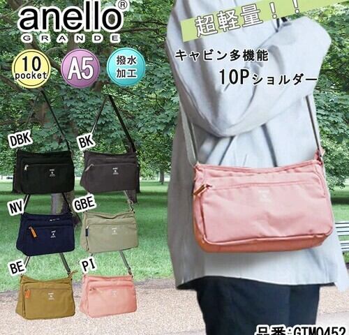 即納★アネロ ショルダーバッグ 軽い バッグ 多ポケット 整理整頓 撥水 超軽量 A5 メッシュポケット 旅行 学校 仕事 お弁当 通学 通勤 学生 OL 主婦 ママ おでかけ 買い物 デイリー プレゼント ギフト シンプル anelloGRANDE キャビンシリーズ