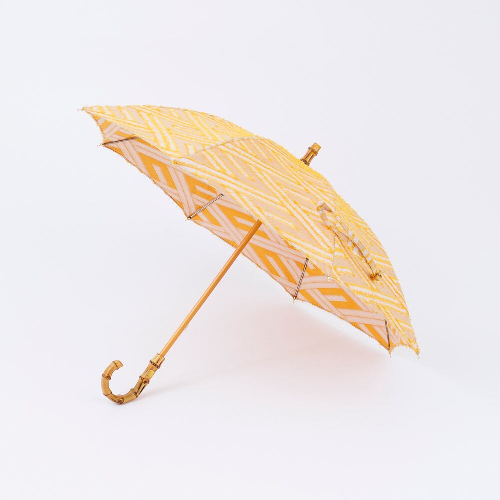 ジャガード生地で作られた、菱模様がおしゃれな晴雨兼用日傘> 職人による手作業で作られた日本製の日傘はUV遮蔽率95%。立体感のある生地など細部にこだわりを感じられます。