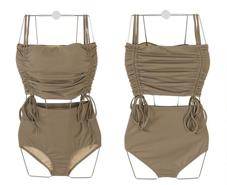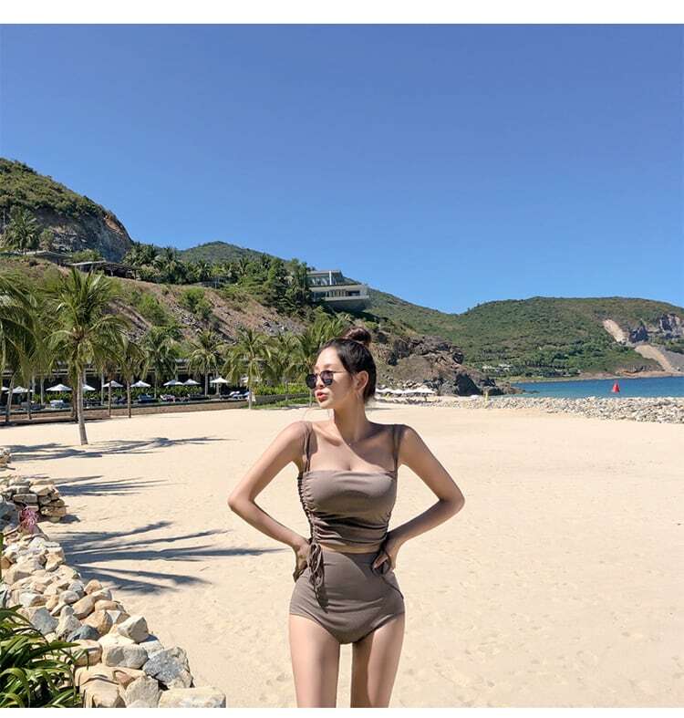 無地上下水着セット レースアップビキニ 韓国風ビーチウェア