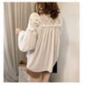 超目玉■カットソー 長袖 オフショルダーみたいな肩レース可愛いプルオーバー 袖ギャザー