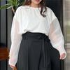 ・袖がシアー素材に切り替わったオーバーロンT