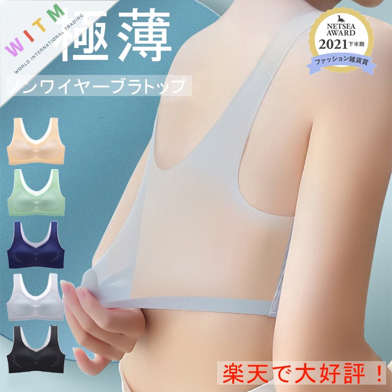 極薄ノンワイヤーブラトップ シースルー 冷感 メッシュ 蒸れない シームレス ナイトブラ 夏 2点セット