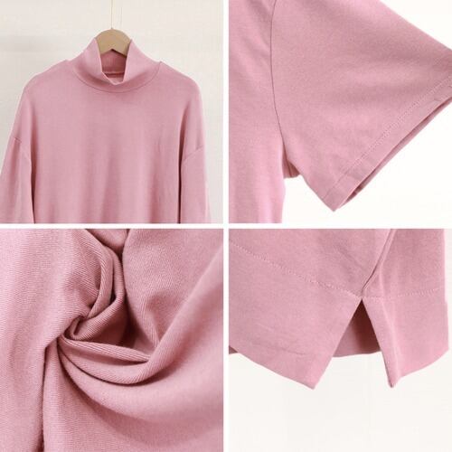 首元がハイネックデザインのシンプル五分袖Tシャツ