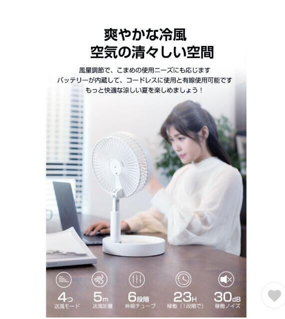 扇風機 卓上扇風機 リビング扇風機 折畳み型 伸縮式 卓上/地上両用 昇降調節 軽量 折りたたみ式 バッテリー内蔵 4段階風量 180°調節可能 静音稼働 熱中症対策