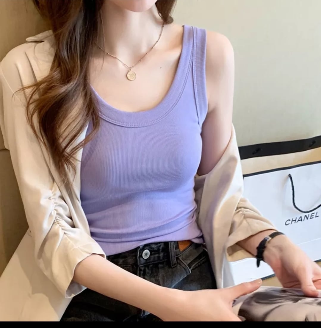 タンクトップ レディース リブ 重ね着 無地 全8色 シンプル 下着 肌着 ストレッチ 伸縮性 スリム 着痩せ 見せブラ ブラ紐隠しインナー トップス ブラック ホワイト 黒 白
