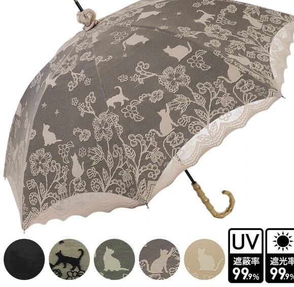 日傘|レース猫柄|ベージュ 猫雑貨 猫モチーフ 猫柄 猫グッズ かわいい傘 日傘 レース傘 プレゼント プチギフト 贈り物