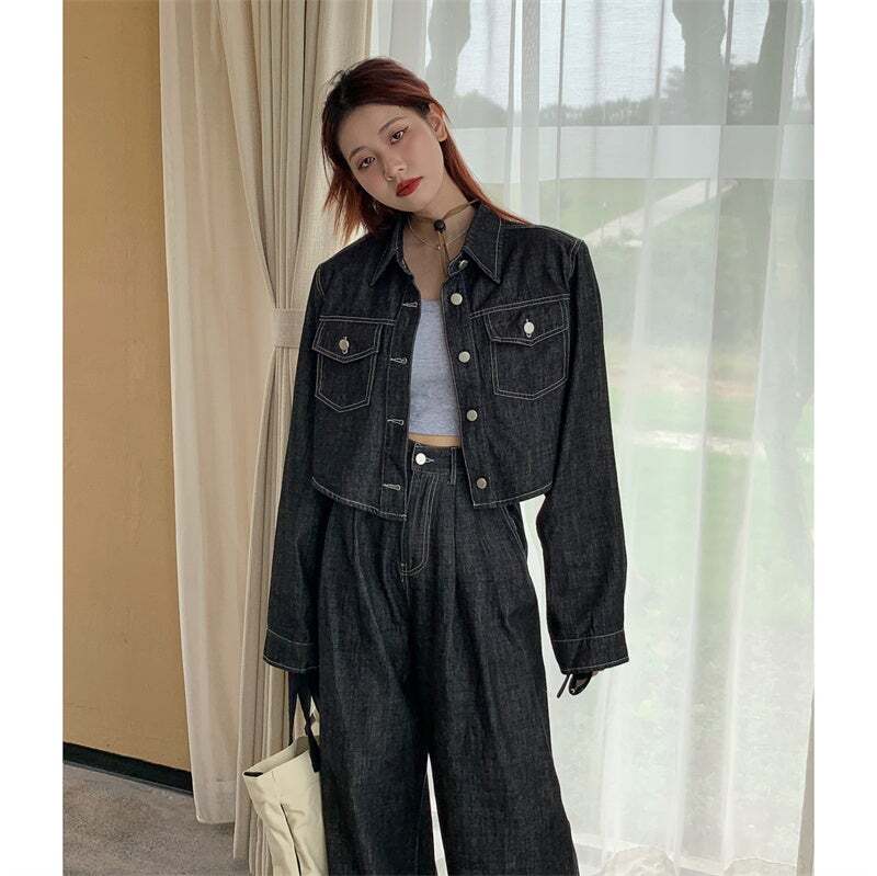 パンツは細身のシルエットが美脚効果を発揮し、ジャケットはトレンディなスタイルを演出します。カジュアルなデニム素材ながらも、大人っぽい大胆なデザインで最旬のスタイリングをお楽しみいただけます。