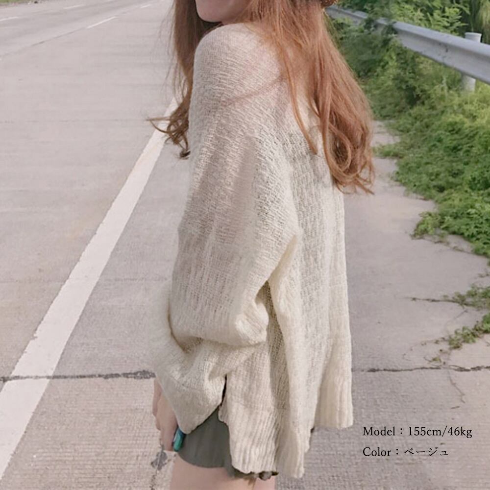 トッパーカーデ レディース きれいめ ボリューム袖 ふんわり ゆったり ショート サマーニット 韓国ファッション