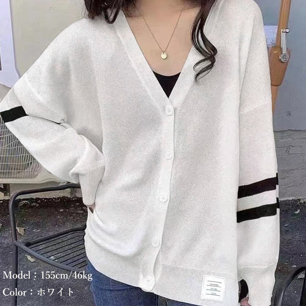 レディース 薄手 袖ライン入り 日焼け止めシャツ Vネック ドルマンスリーブ サマーニットカーデ 長袖 冷房対策