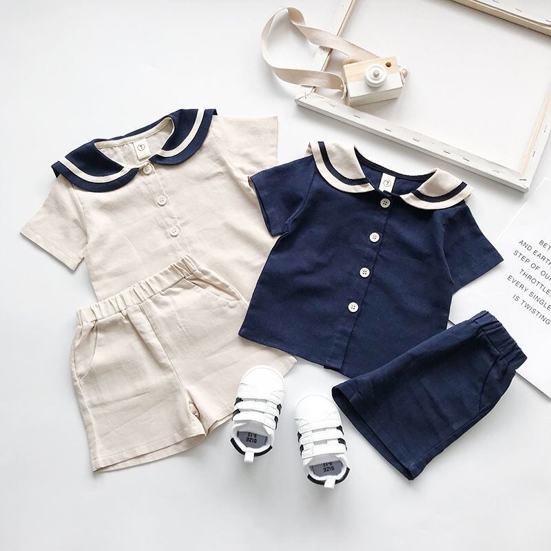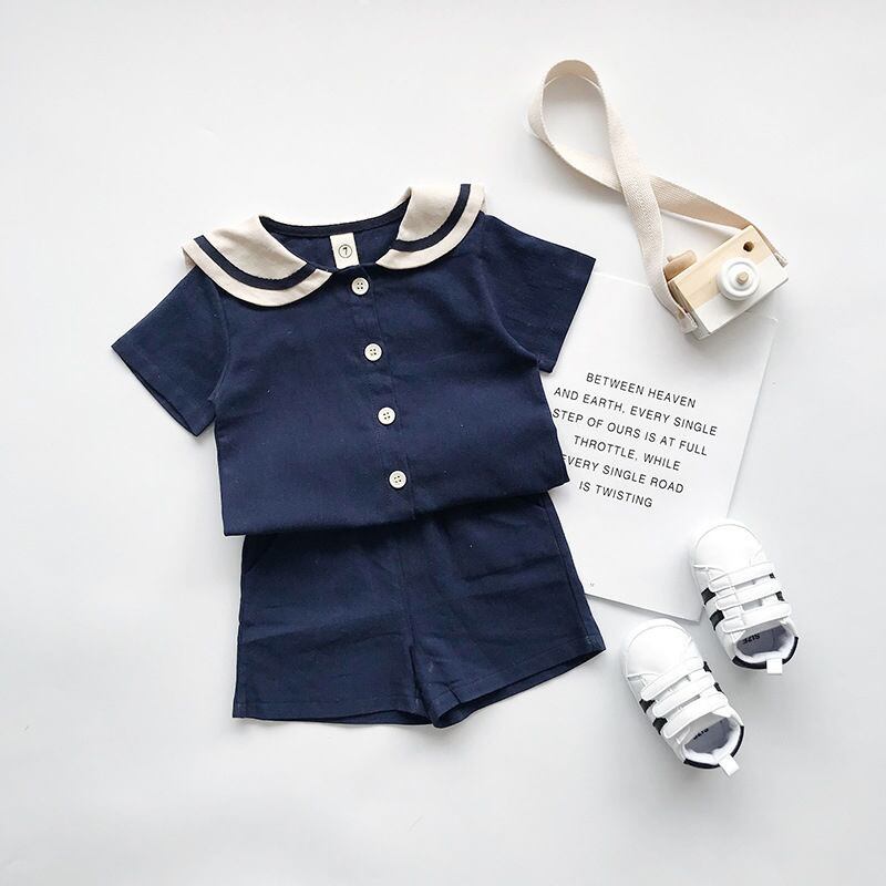「即納※24時間以内発送」キッズセットアップ セーラートップス ショートパンツ 上下セット 男女兼用