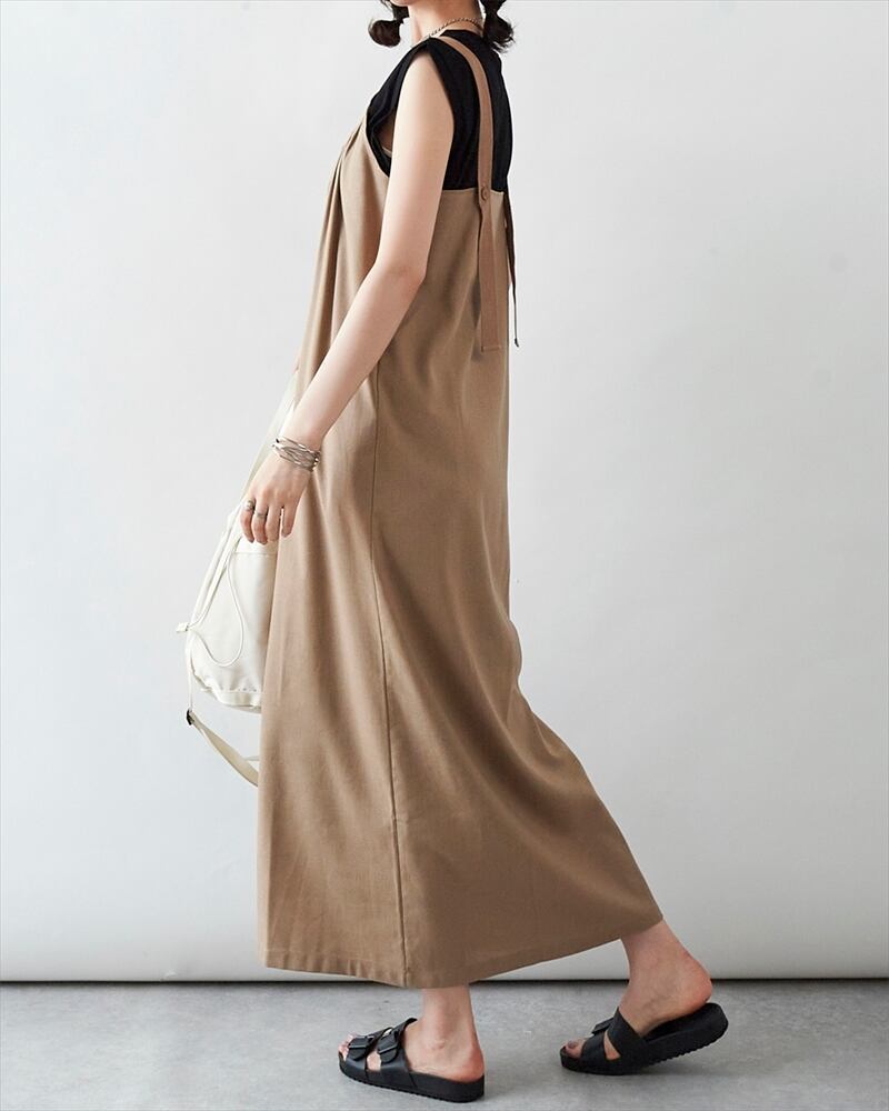 2023/SS/ワンピース/ロングワンピース/サロペット/リネン/麻/大きいサイズ/韓国/春/夏/無地/Aライン/フリーサイズ/マキシ丈/リネン混ギャザーワンピース(裏地付き)