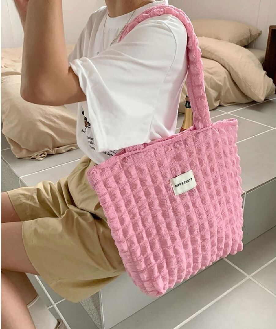 2023新作 韓国ファション レディース ショルダートートバッグ ポップコーン ワッフル サブバッグ 軽量 ファスナー 可愛