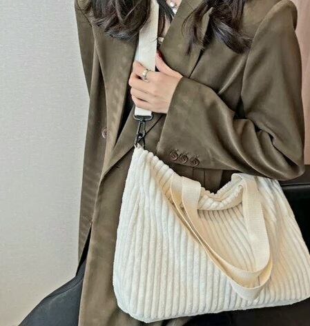 レディース バッグ トートバッグ ミニマリスト ファジー ショルダートートバッグ 女性 柔らかい コーデュロイ ハンドバッグ 37cmx29cmx12cm 37cmx29cmx12cm ホワイト