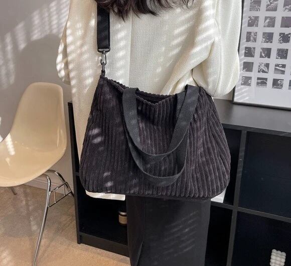 女性のための柔らかいコーデュロイハンドバッグ,しっかりした,ヴィンテージのショルダーバッグ