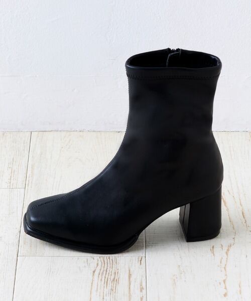 太めのヒールで歩きやすい、シンプルなシルエットのブーツ。