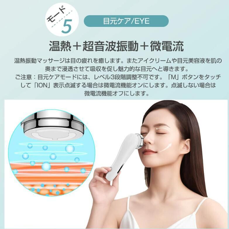 【目元ケア】温熱器能で、体温より少し温かいくらいで心地良い。加えて高頻度振動で表情筋と筋肉を動かし、毛穴を開けて、通常のお手入れでは届かない真皮層まで届け、お肌に潤いを与えます。