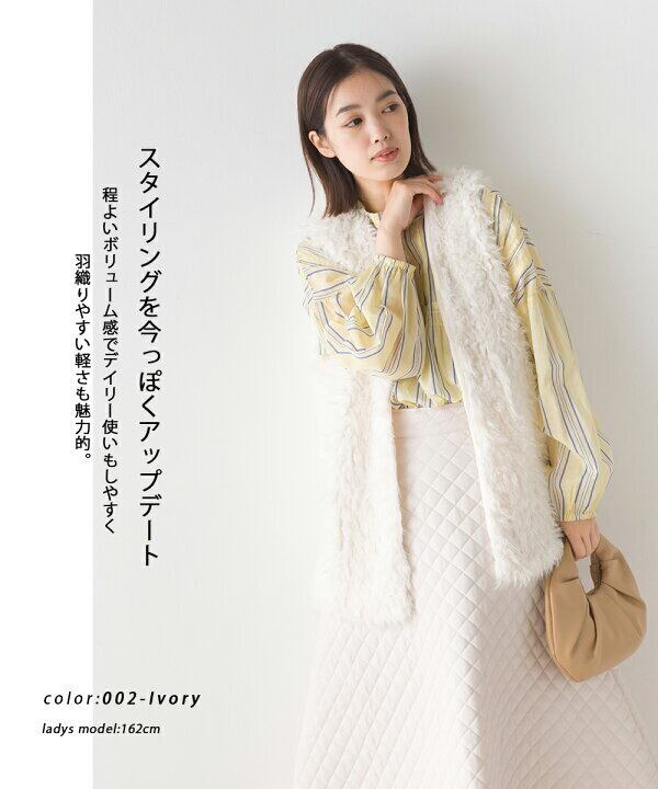 滑りのよい裏地付きで着脱しやすくシャギーが存在感のある一着です。